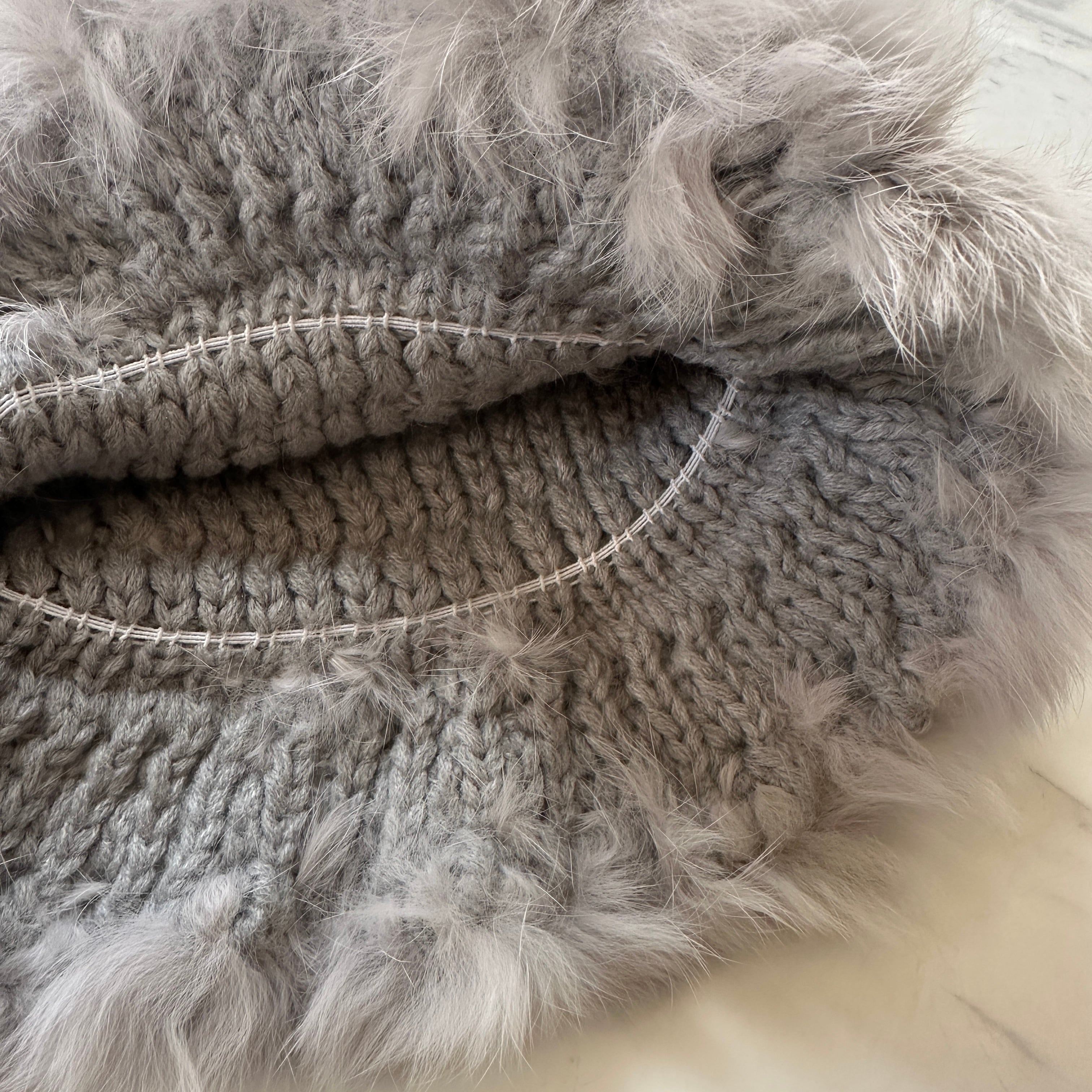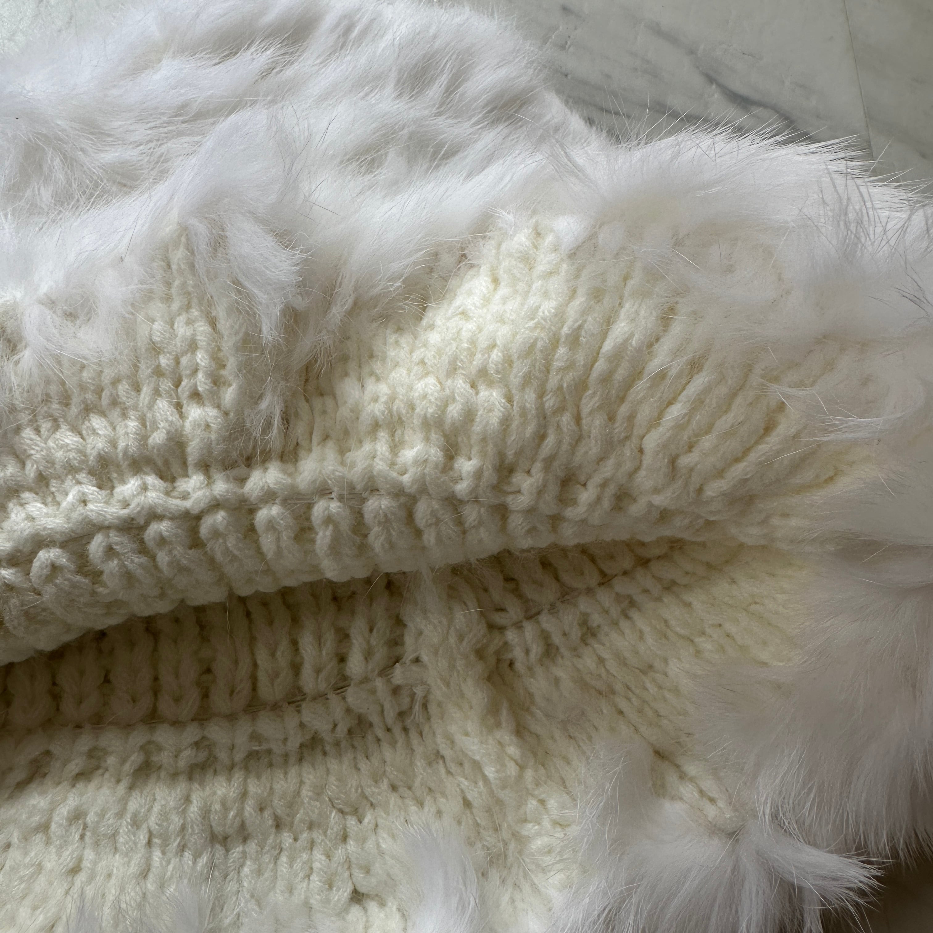 天然ファー、ニット手編みのため僅かに個体差がございます。